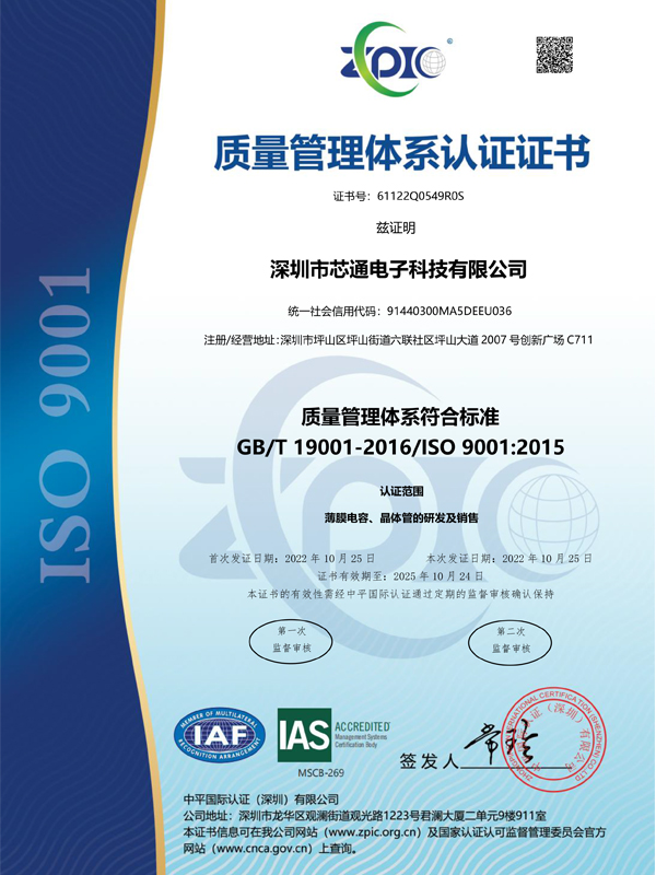 质量体系认证证书